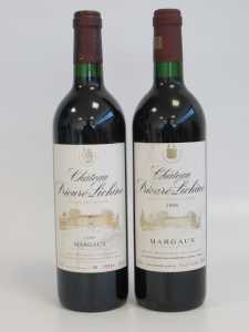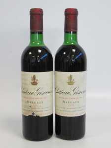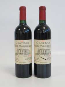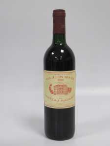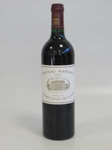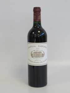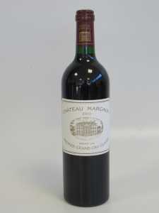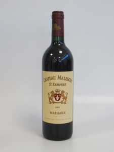 Mise du Ch. Malescot St Exupéry. Et. tachées. N : 2 bas goulot, 1 limite haut épaule.